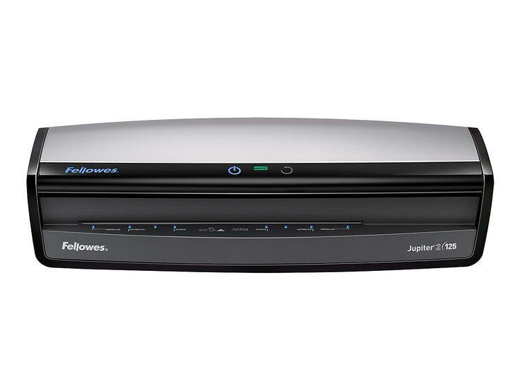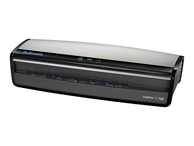 Protect frequently referenced documents with this pouch laminator. The AutoSense system automatically detects pouch thickness and makes appropriate adjustments, creating consistent, high-quality results with every use. An Advanced Pouch Tracking System reverses pouches in the event of a misfeed to shield pages from damage. This laminator heats up in just one minute and can process up to 47 inches per minute, ensuring fast, precise operation. Use the included pouch kit to create reusable worksheets, schedules and other documents for your business or classroom. An automatic shutoff function prevents overheating while also conserving energy, while the six-roller system provides smooth, dependable operation. The versatile design works with both hot and cold laminating pouches, so you can choose the right option for every task. This Fellowes Jupiter 2 125 pouch laminator kit is designed for large office use, so it's ready to handle multiple tasks each day.