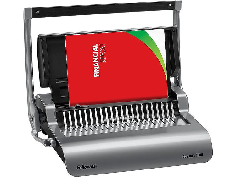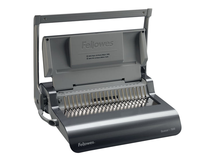 Fellowes Quasar+ Comb Binding Machine, 500 Sheet Capacity, Metallic Silver/Black (5227201)