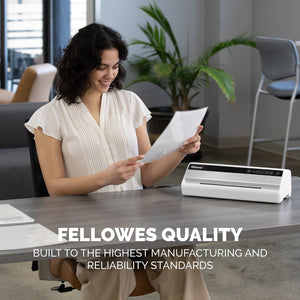 When protecting valuable or heavily handled documents in your office or classroom, trust the rapid precision of the Fellowes® Saturn™ 95 Thermal Laminator Machine. Thoughtfully and beautifully designed to keep pace with your workflow, the Saturn™ 95 is warmed up and ready for lamination work within 60 seconds, all made possible by Fellowes’ InstaHeat™ technology. For fast and reliable performance, the Saturn™ 95´s improved internal mechanics allow you to laminate up to 19” per minute with perfect results. Flexible and intuitive, the Saturn™ 95 can fit documents up to 9.5” wide, and allows you to choose between 3-mil, 4-mil, or 5-mil laminator sheets for hot lamination, or a cold setting for self-adhesive pouches. But unlike other laminators, different pouch thicknesses don’t mean frustrating jams. The Saturn™ 95 features advanced sensors to detect jams forming and notify you via a red light, as well as a quick release lever to recenter or remove jammed pouches. And when it is time to maintain your machine with a cleaning sheet, the integrated CleanAlert™ provides a gentle reminder. The Saturn™ 95 is one of the latest product innovations from Fellowes, with the quality and performance you expect from the most trusted name in lamination.