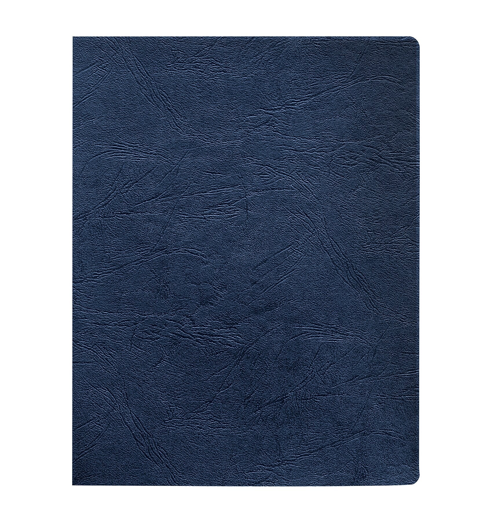 Fellowes® Expressions grain texture presentation cover in navy color is adaptable to any binding system. Cover a professional look and feel to any document.