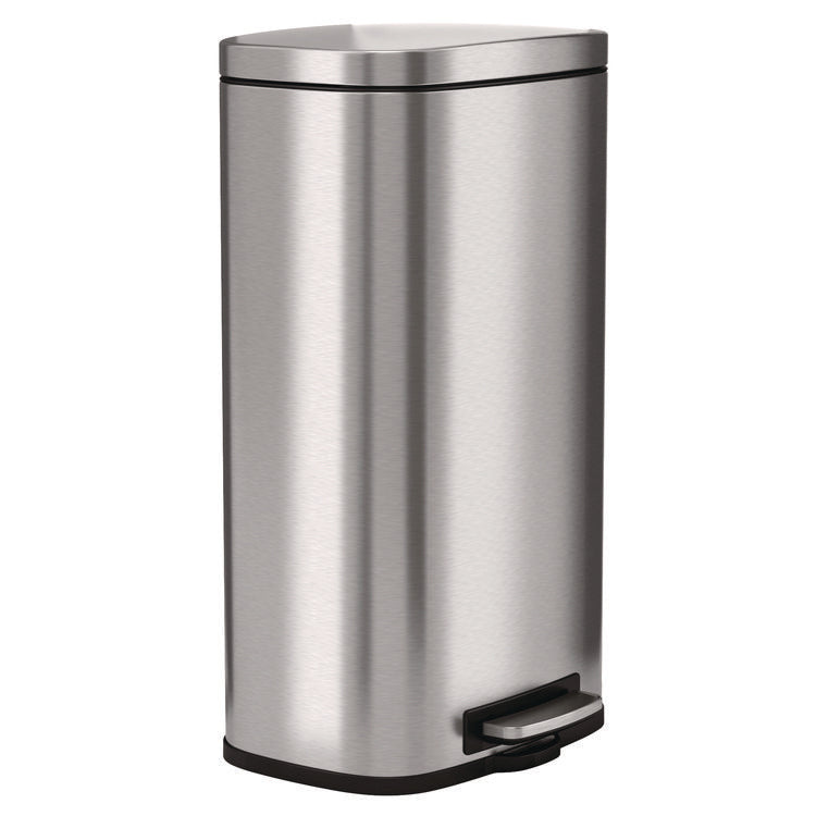 Fire-Resistant Step Pedal Trash Can, 8 gal, Plastic/Stainless Steel, Silver
