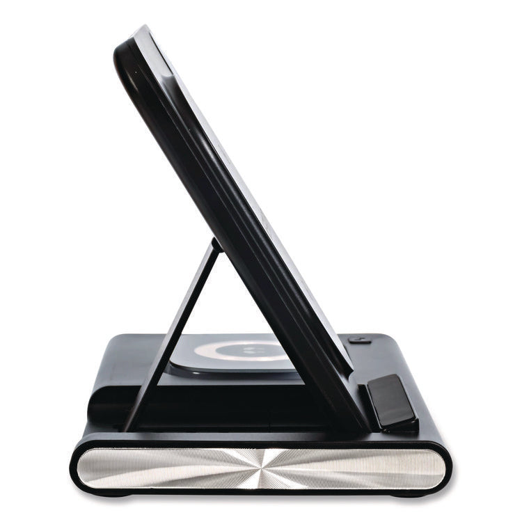 - 3-in-1 foldable wireless charging station that allows the station to be collapsed flat for easy storage or for travel; when collapsed it will easily fit in your travel backpack, laptop case or purse.