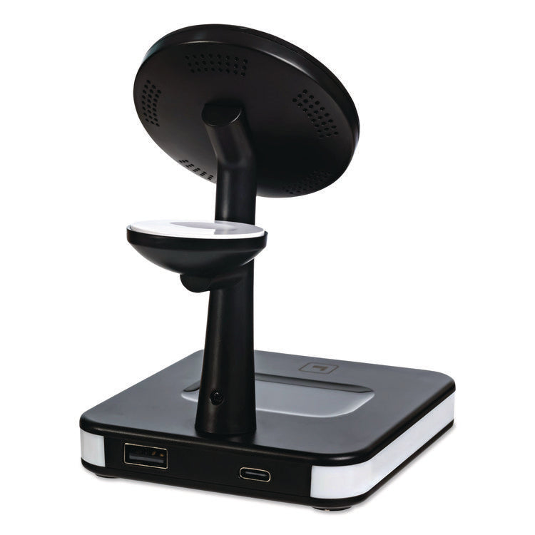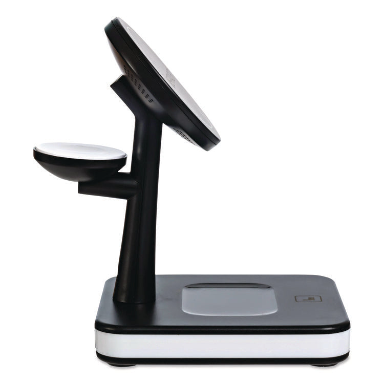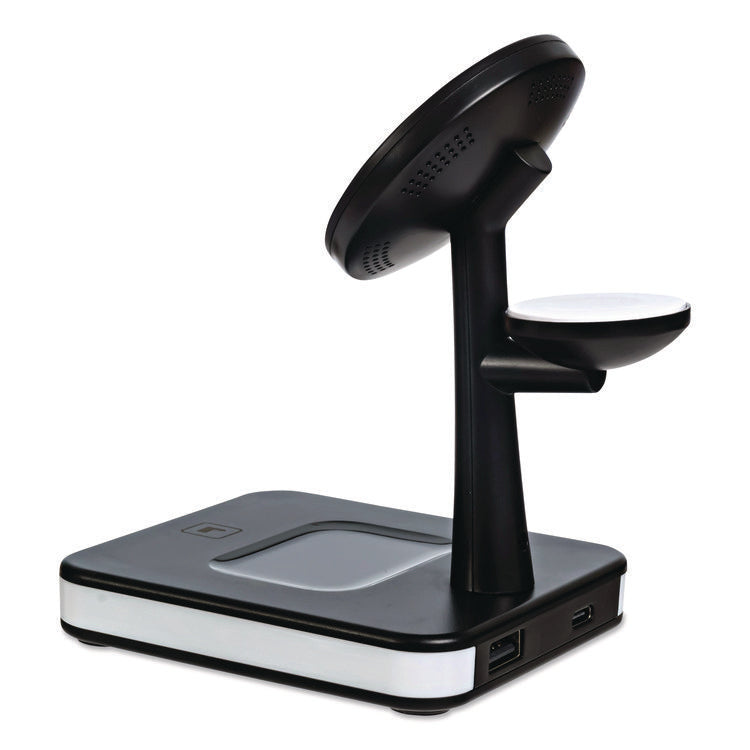 - Wireless charging station that charges up to four devices at once on one compact station to keep your devices organized and eliminate the need for multiple electrical outlets.