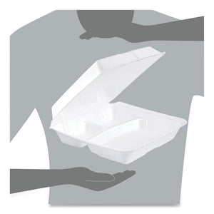Foam Hinged Lid Containers, 3 Compartments, 9.25 x 9.5 x 3, White, 100/Sleeve, 2 Sleeves/Carton