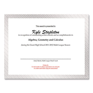 Foil Border Certificates, 8.5 X 11, White/silver With Braided Silver Border,15/pack