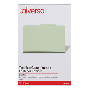 Four-Section Pressboard Classification Folders, 2" Expansion, 1 Divider, 4 Fasteners, Legal Size, Green Exterior, 10/Box