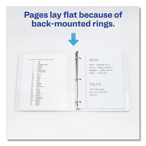 Now you don't have to choose between clever design and good looks. This Framed View Binder has both. Clean, elegant border on front panel perfectly frames and centers your title page for a professional look. Clear cover and spine inserts allow you to easily customize your binder using free, easy-to-use designs and templates from Avery® Design & Print (mounting sheets included). Two clear interior pockets and a business card pocket add to the professional image. Pages lie flat with back-mounted rings (exposed rivets on back). Wider front and back panels fully cover standard dividers and sheet protectors. In this binder, your presentation will get the attention it deserves.