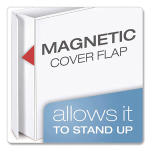 Magnetic flap closure stabilizes binder, allowing it to stand and stack unaided. Five color ID rings (provided with each binder) snap in and out for easy identification. Clear overlay for customization on all three sides with one letter-sized sheet. ONE-TOUCH® Easy Open® rings open, close and lock with one simple motion. Non-stick, PVC-free cover with clear overlay for customization of front, back and spine.