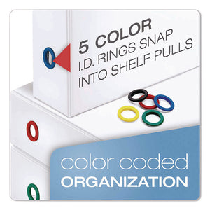 - Five color ID-rings snap in and out of hole on spine for convenient identification.