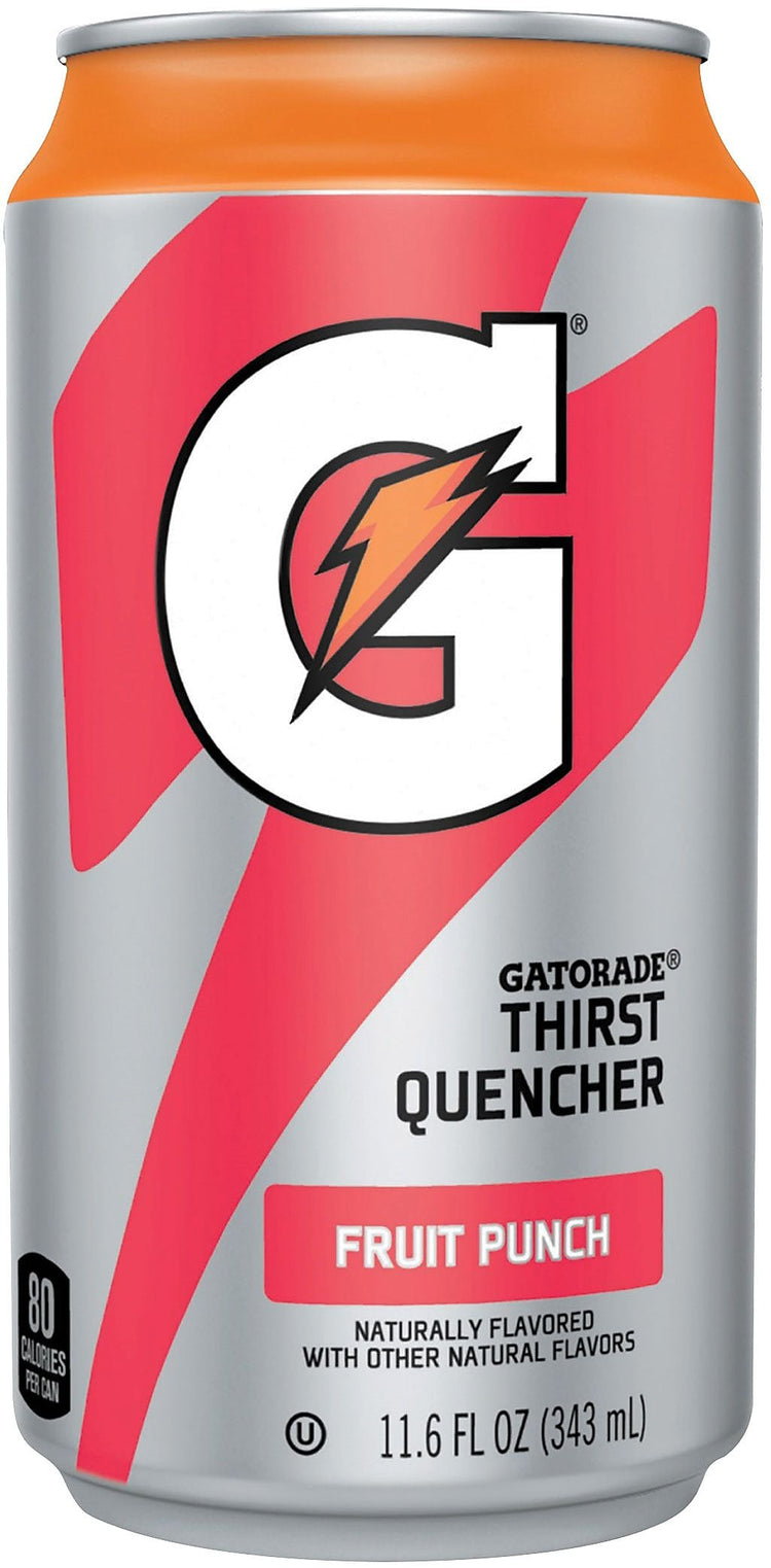 Gatorade Fruit punch liquid concentrate ready-to-drink energy drink in 11.6 oz can offers relishing taste. Energy drink in liquid form is easy to make and provides energy to working muscles for improved performance.