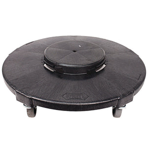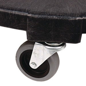 Universally achors 32, 44, and 55 gallon containers. 25% larger diameter than standard dollies and provides up to a 50% improvement in tip resistance over standard dollies. Ideal for use by hospitals, nursing facilities, schools, contract cleaners, and office buildings.