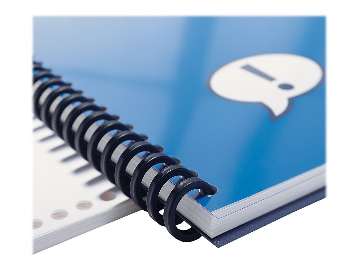 Give a sleek look to marketing materials or business reports with these black spines. They're capable of holding up to 45 sheets, so you can use them for multipage workbooks, and these GBC binding spines let sheets sit flat with a 360 degree rotation for convenient note-taking and photocopying.