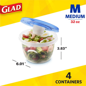 Glad® To Go Lunch Containers, 32 Oz., 4/Pack (78404)