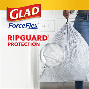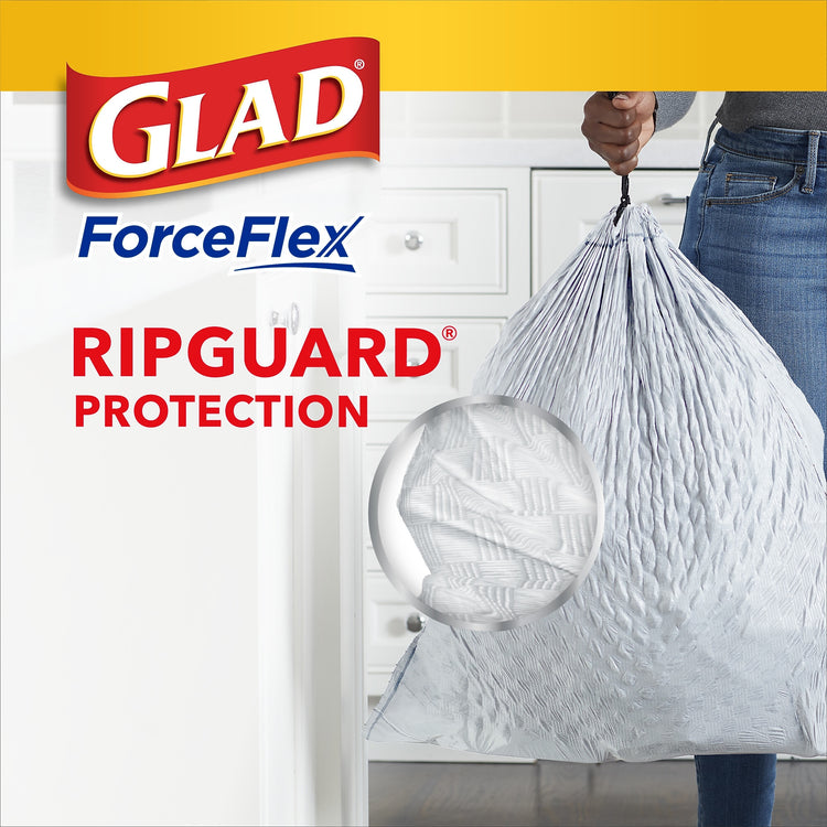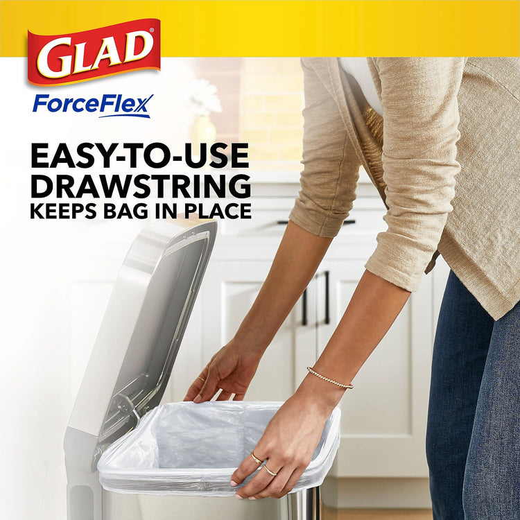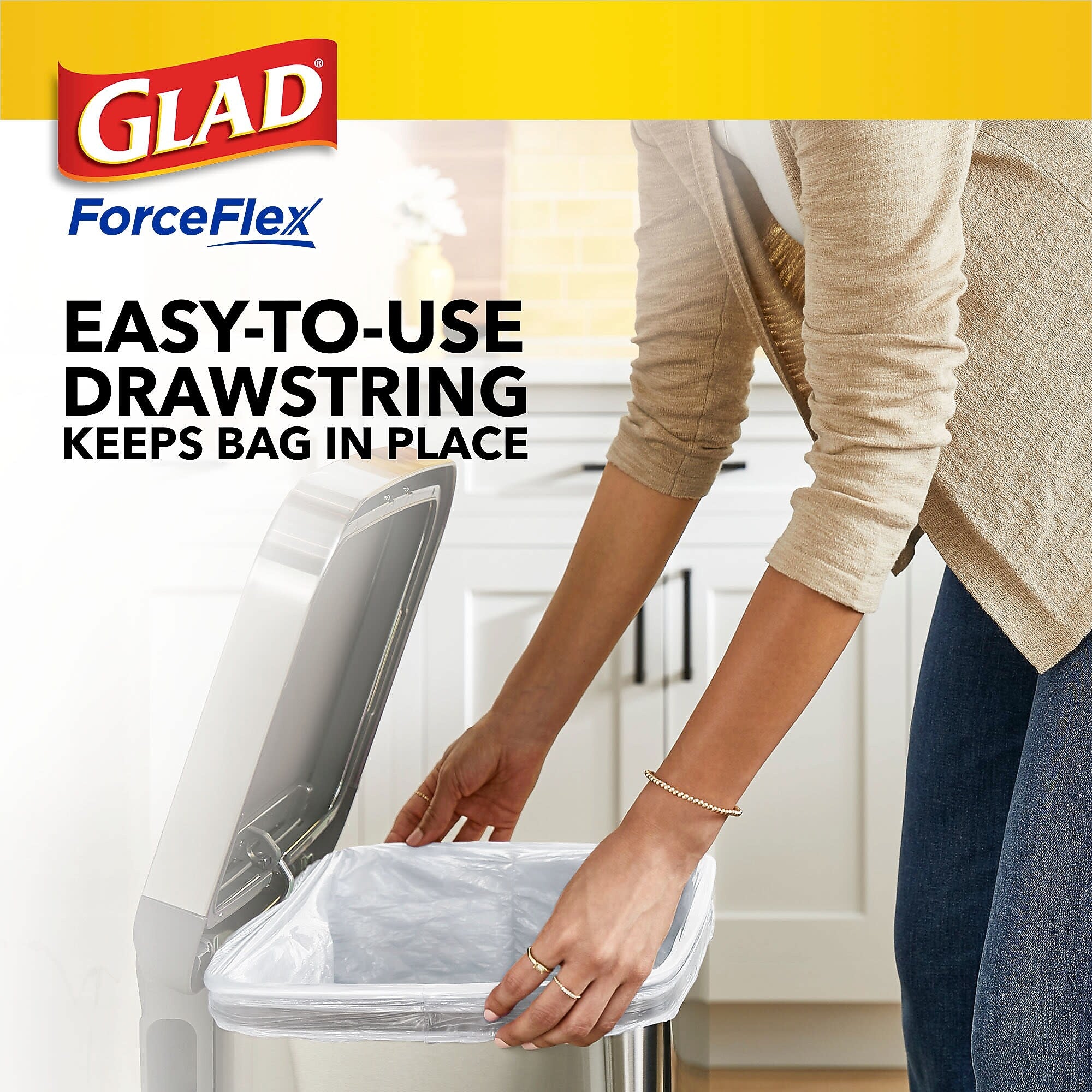 - FORCEFLEX STRENGTH: Glad’s trusted ForceFlex technology allows the bag to stretch and expand over heavy loads with sharp edges, delivering durable strength; packaging may vary