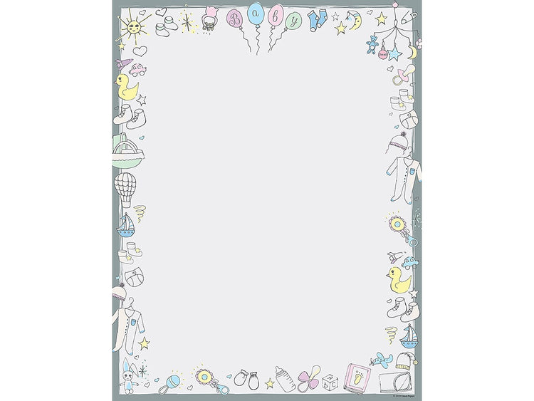 Use bright letterheads for sending congratulations and personal messages. Pack contains 80 sheets of 8.5" x 11" stationery. Great Papers Baby Time letterheads have a 24-pound paperweight for durability and give documents a high-quality feel. Baby-themed print produces a funny appearance, and the blank center offers a space where the text is easily visible. Compatibility with most inkjet and laser printers provides added convenience and versatility.