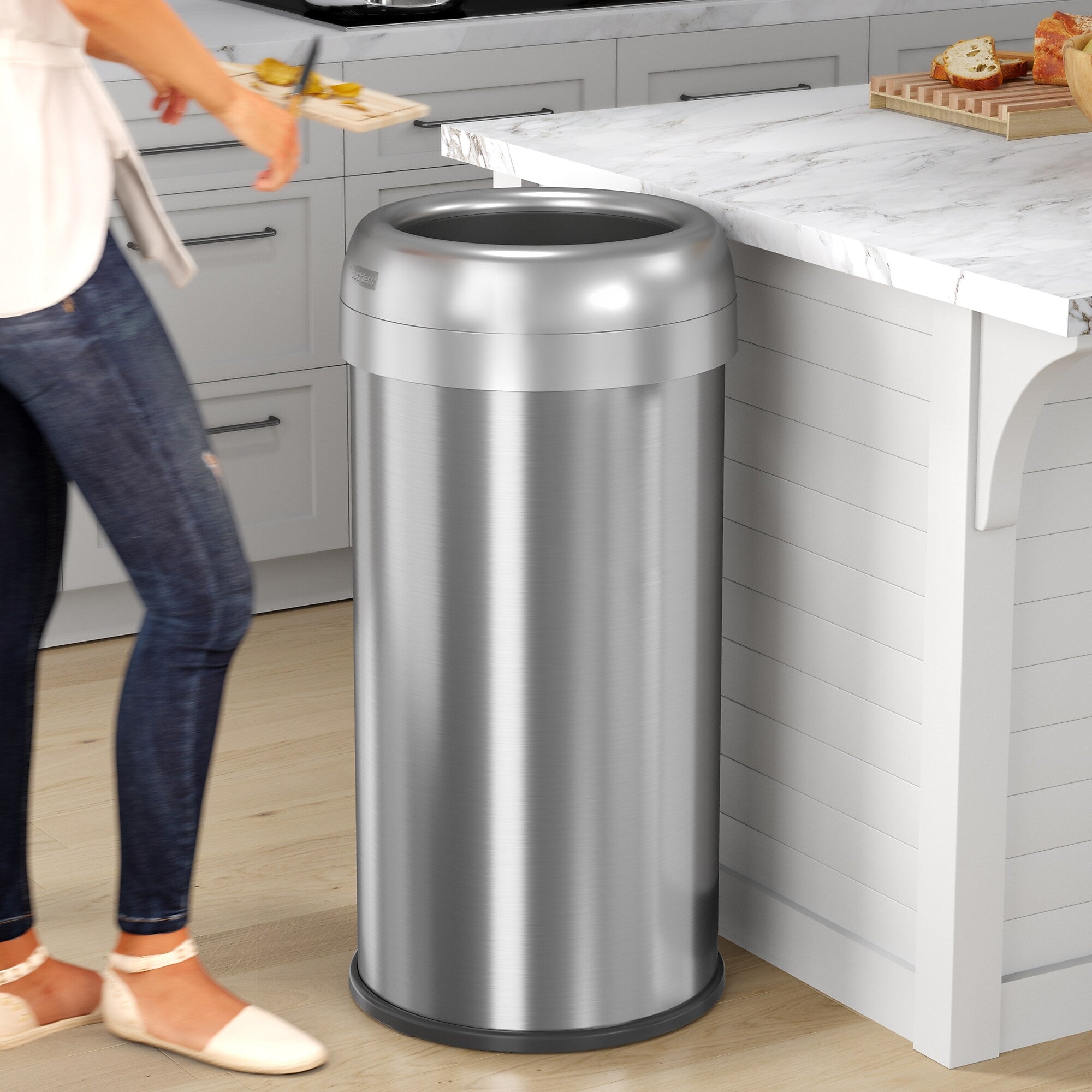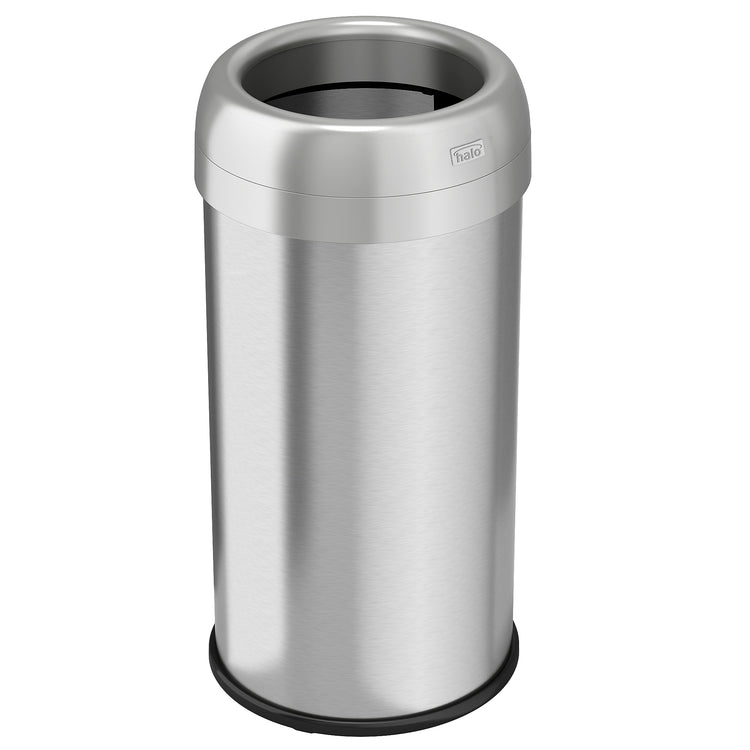 halo Stainless Steel Round Open Top Trash Can with Dual AbsorbX Odor Control System, Silver, 16 Gal. (OT16STR)