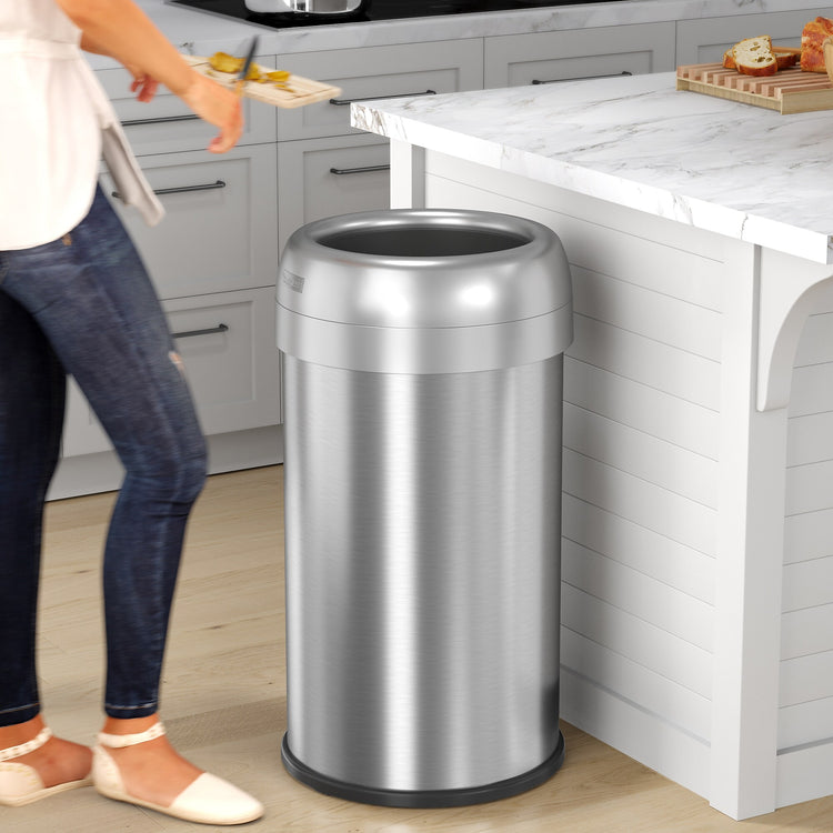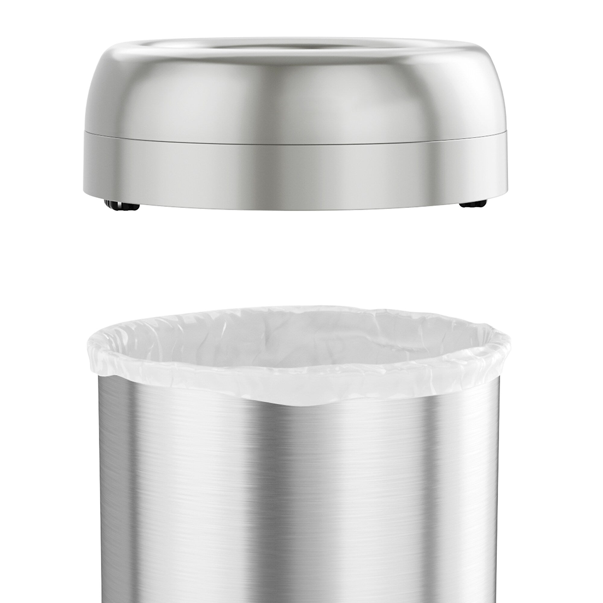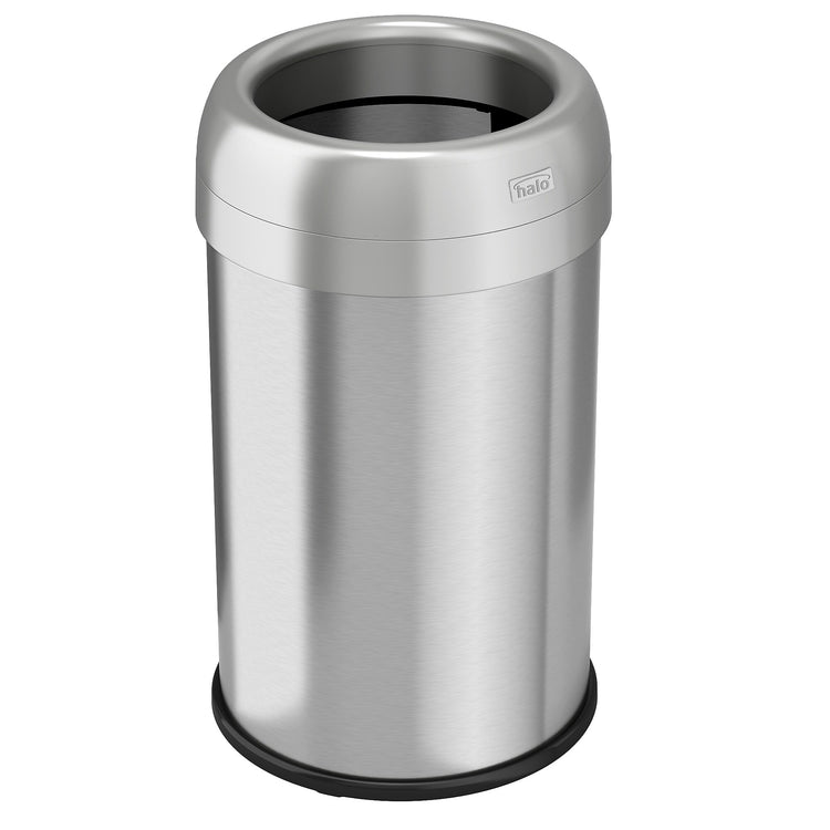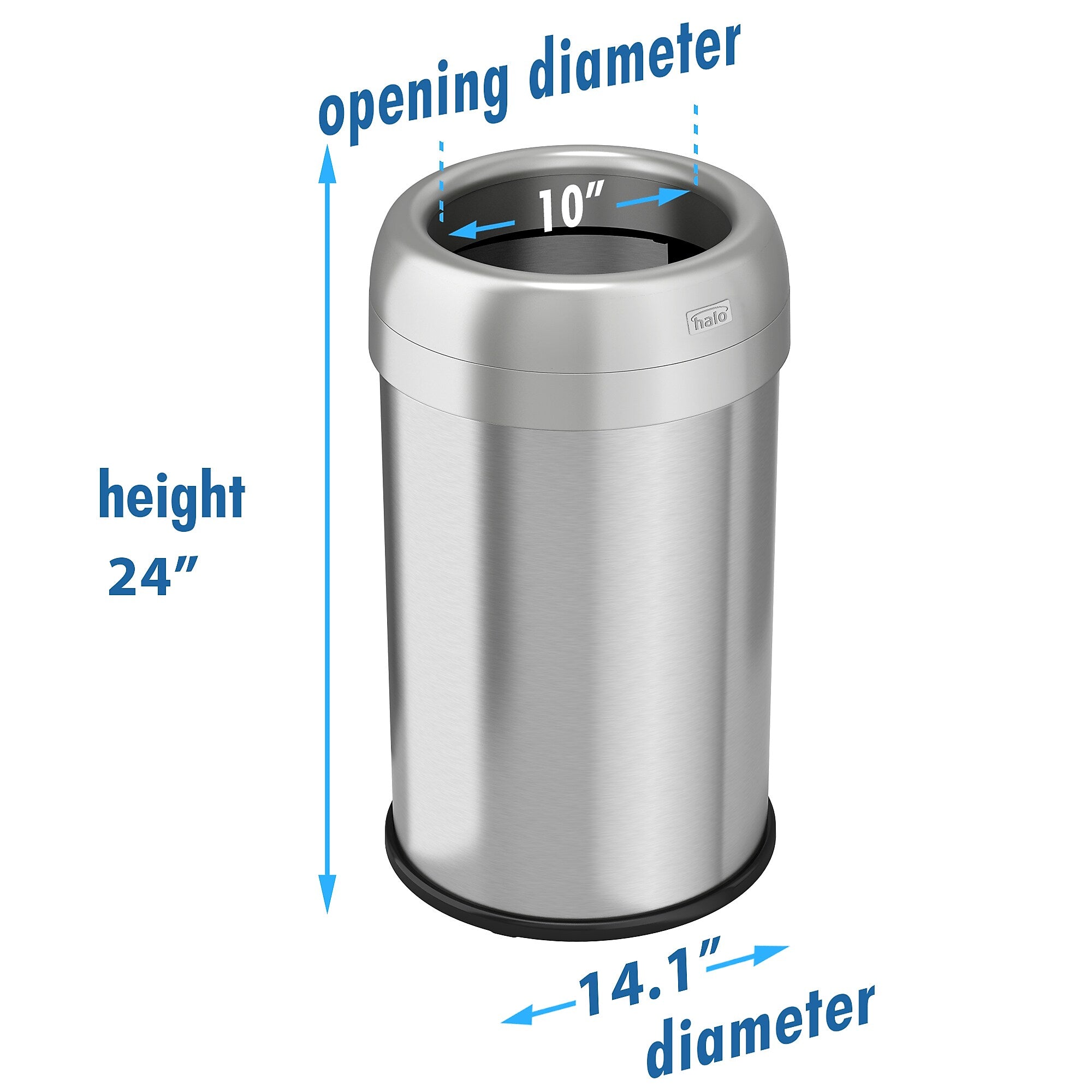 halo Stainless Steel Round Open Top Trash Can with Dual AbsorbX Odor Control System, Silver, Silver, 13 Gal. (OT13STR)