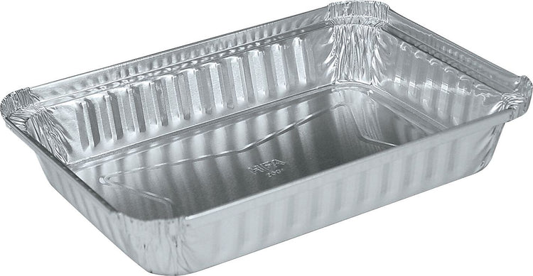 All-purpose pans are an affordable carryout solution. Oblong aluminum design accommodates a wide variety of carry-out and catering applications. Easy to clean for reuse.