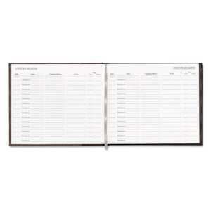 Keep track of visitors with this efficient register. Smart design features ledger paper with columns for Date, Name, Company/Address, Person to See, Arrive/Depart Times to manage a complete record of visitors comings and goings. Holds more than 1,500 entries; 14 entries per page. Convenient ribbon place marker.