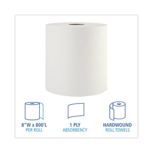Hardwound Paper Towels, 1-Ply, 8" x 800 ft, White, 6 Rolls/Carton