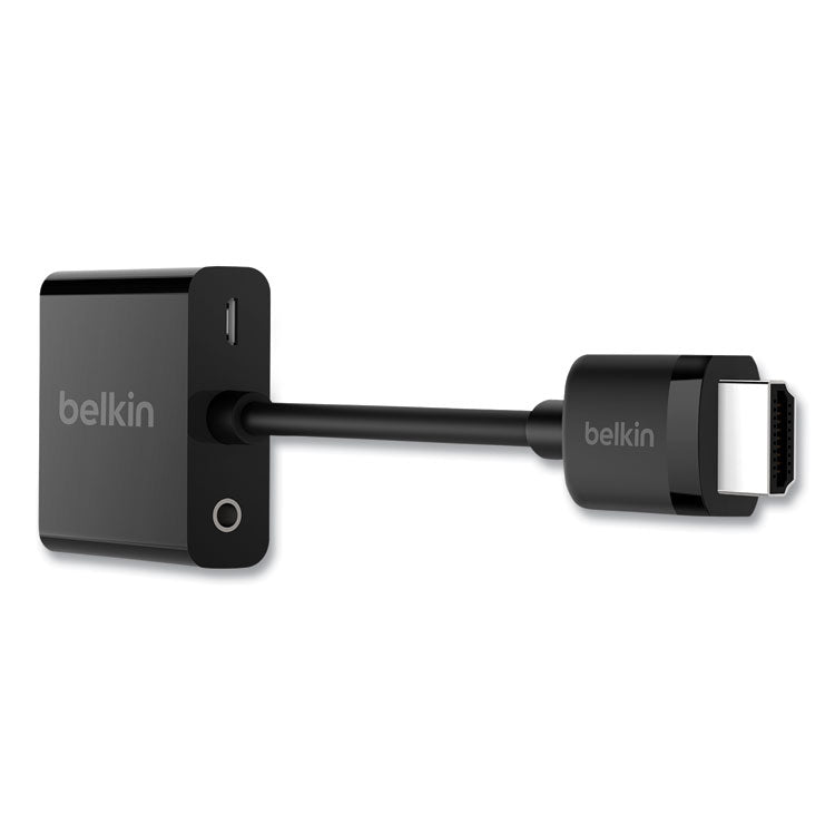 HDMI to VGA Adapter with Micro-USB Power allows you to enjoy content from your laptop, smartphone or tablet on a VGA-enabled projector or screen. With a variety of configurations this adapter is perfect for work presentations, classroom lessons, and personal entertainment. Compact design for portability so you can easily take it along while traveling.