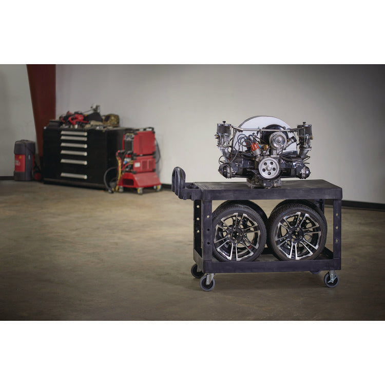 Heavy-Duty Utility Cart with Flat Shelves, Plastic, 2 Shelves, 500 lb Capacity, 25.25" x 54" x 36", Black