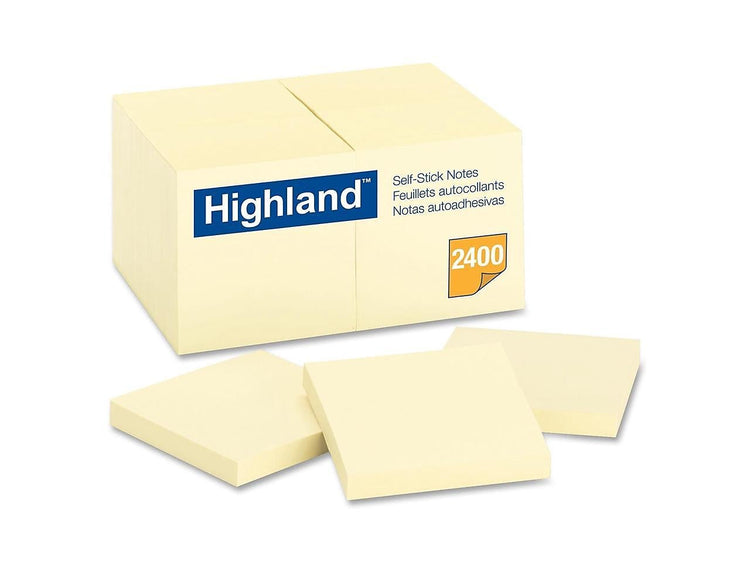 Highland Sticky Note, 3" x 3", Yellow, 100 Sheets/Pad, 24 Pads/Pack (654924PK)