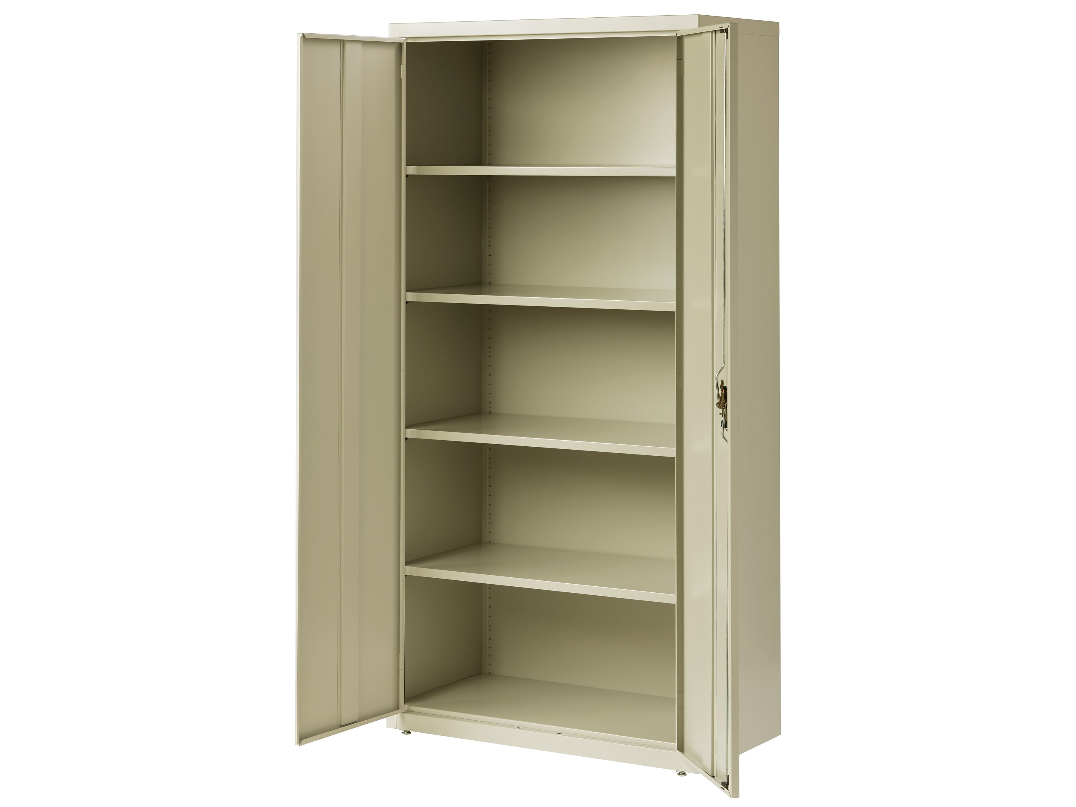 Industrial grade steel storage cabinets provide a concealed storage solution that is useful in a variety of places including your home, garage, basement, business, industrial, education, hospitality and healthcare. Storage cabinets are a space-efficient, flexible storage solution. Durable, fully welded construction storage cabinet that will help keep your essential materials organized and secure. Painted Steel is a non-porous surface that is easy to clean. Recessed handle with core removable lock and lock rods provides a three point locking system for extra security for your items. Core removable locks can be keyed alike to other units. Four shelves are included with this storage cabinet. Shelves are adjustable in 1" increments with 180 pounds capacity per shelf. Limited lifetime warranty. Baked enamel paint provides a smooth durable finish. Meets or exceeds ANSI-BIFMA industry standards. Greenguard gold certified for indoor air quality.