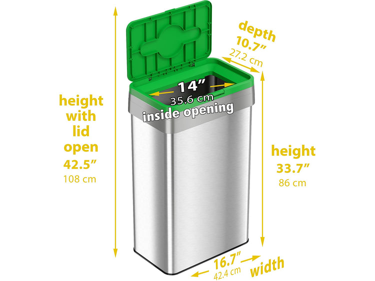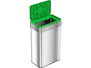 Make it easy to sort compost quickly and cleanly in high-traffic venues such as cafeterias, lobbies, kitchens, stores, and more with this HLS Commercial compost bin. Paired with a 21 gal. stainless steel rectangular bin, the lid features a push-button release for easy access. The universally recognizable color coding and decal clearly mark the bin for recycling, while the dual AbsorbX odor filters neutralize odors. Purchase separately or with the recycle and trash bins for a complete waste disposal solution.