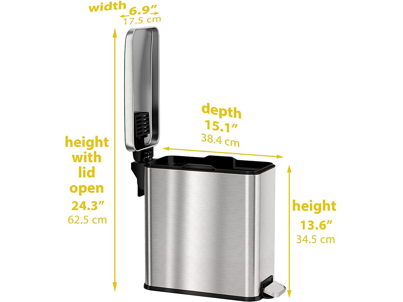 - Step trash can ensures clean, litter-free space and provides hands-free operation
