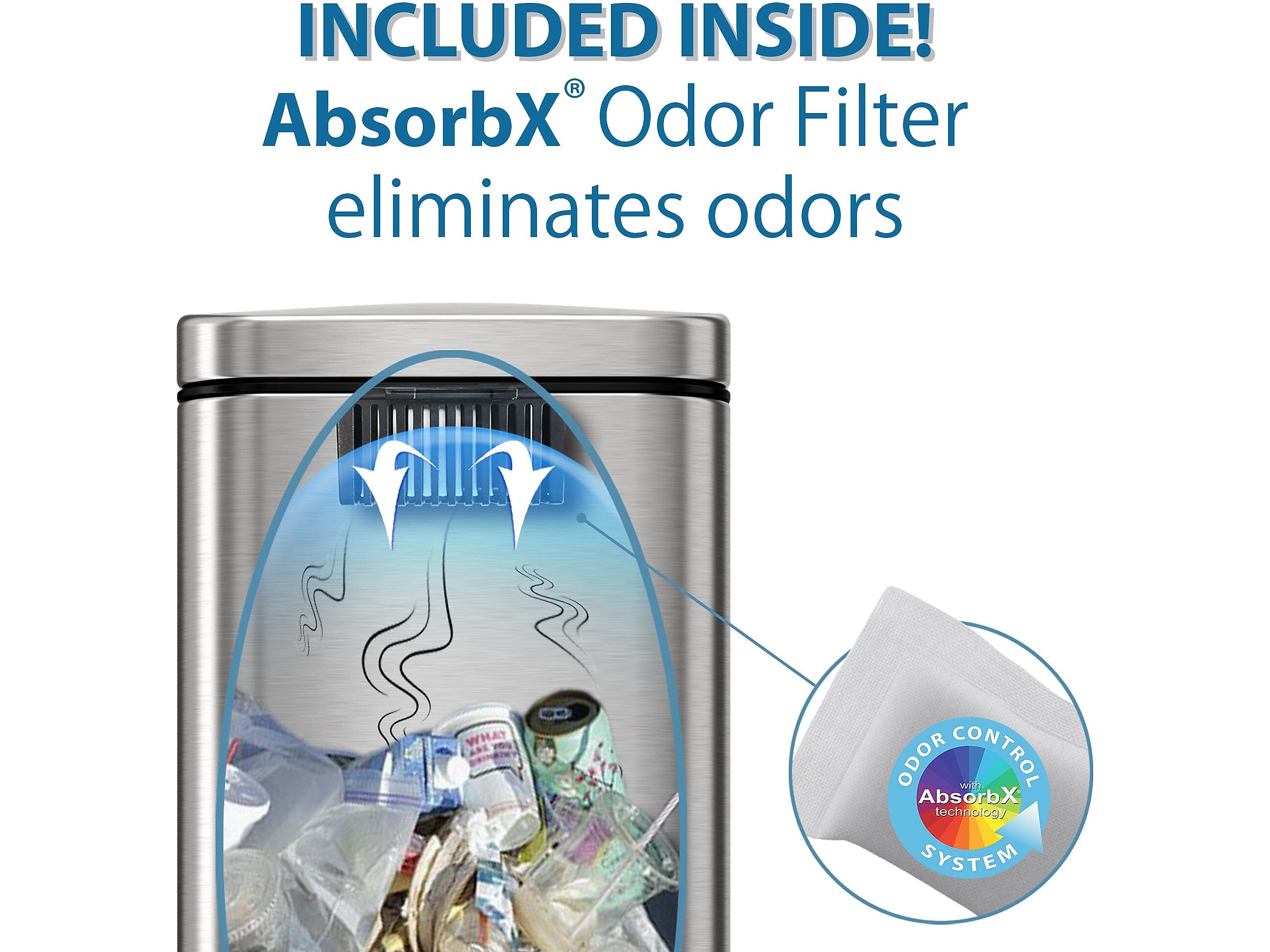- AbsorbX odor filter utilizes all-natural activated carbon technology to absorb and neutralize trash odors, leaving your kitchen smelling fresh and clean