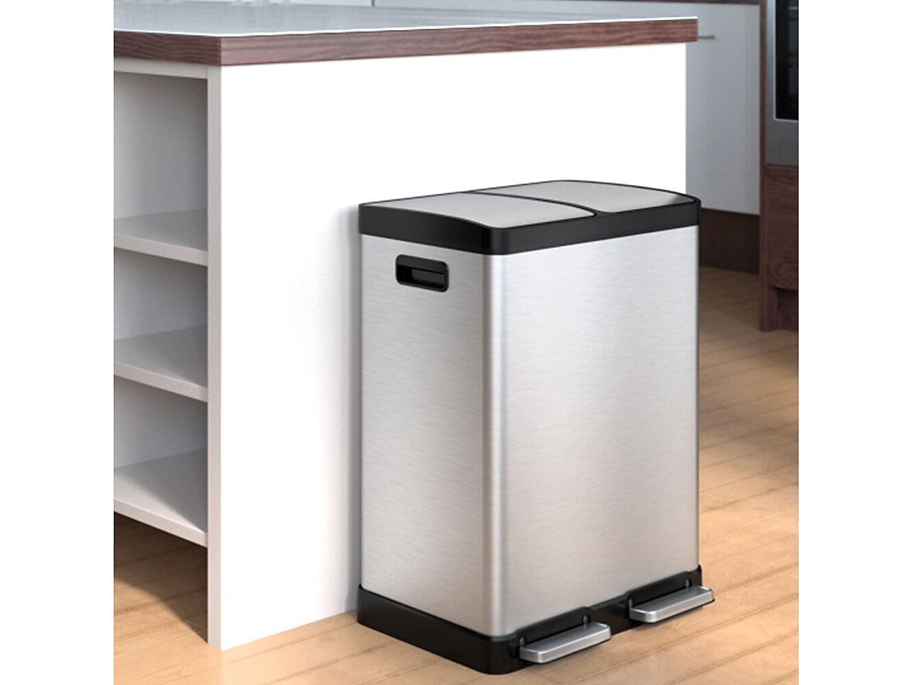 The HLS Commercial trash can and recycling bin combo is a great way to dispose of trash in the office. The ergonomically designed pedal requires minimal force to operate. The gentle lid close is smooth and silent. The easy-to-replace air damper means this step trash can will provide years of like-new performance. It also features a removable inner bucket for quick and easy emptying. The finish is fingerprint-proof, smudge-resistant, and easy to clean. HLS Commercial provides all the elegance, convenience, and durability you could hope for in a trash can.