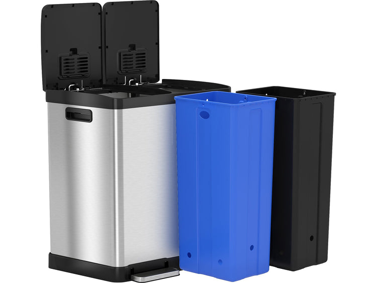 - Trash can and recycling bin combo ensures clean and litter-free space and provides hands-free operation