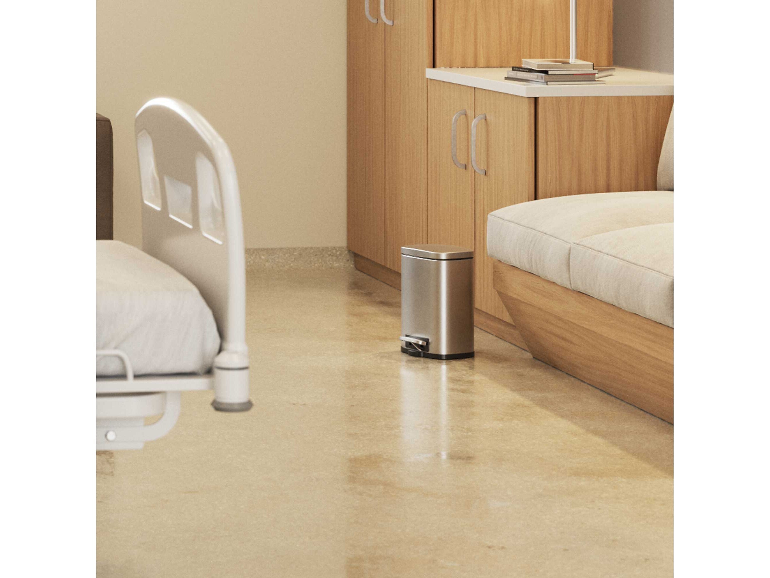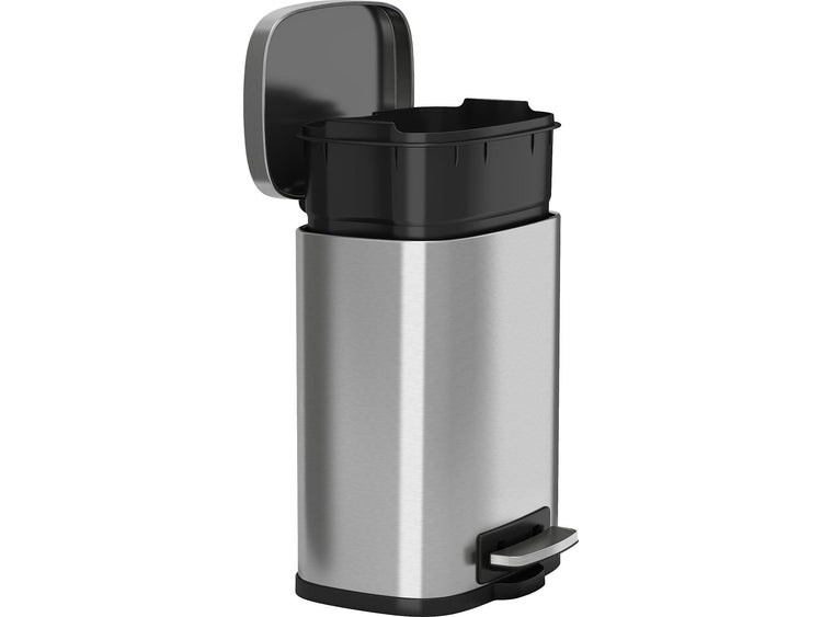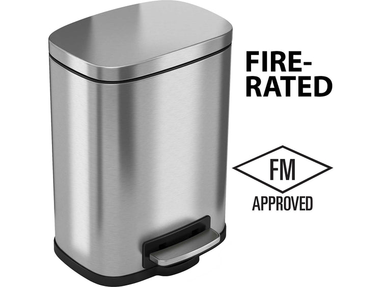 This HLS Commerical 1.32 gal. stainless steel step trash can is tested and certified by FM Approvals, so it provides the compliance, protection, and style you need and want in your facilities. Bin fires are quickly extinguished with the special fire-retardant liner material and a tight lid design that restricts airflow to the interior of the bin, starving a flame of necessary oxygen. Designed to be as aesthetically pleasing as it is safe and easy to use, the elegant stainless steel bin complements any decor. The smooth and easy pedal requires minimal effort and is coupled with a soft and silent lid close. Emptying the trash is quick and clean with the removable inner bin.
