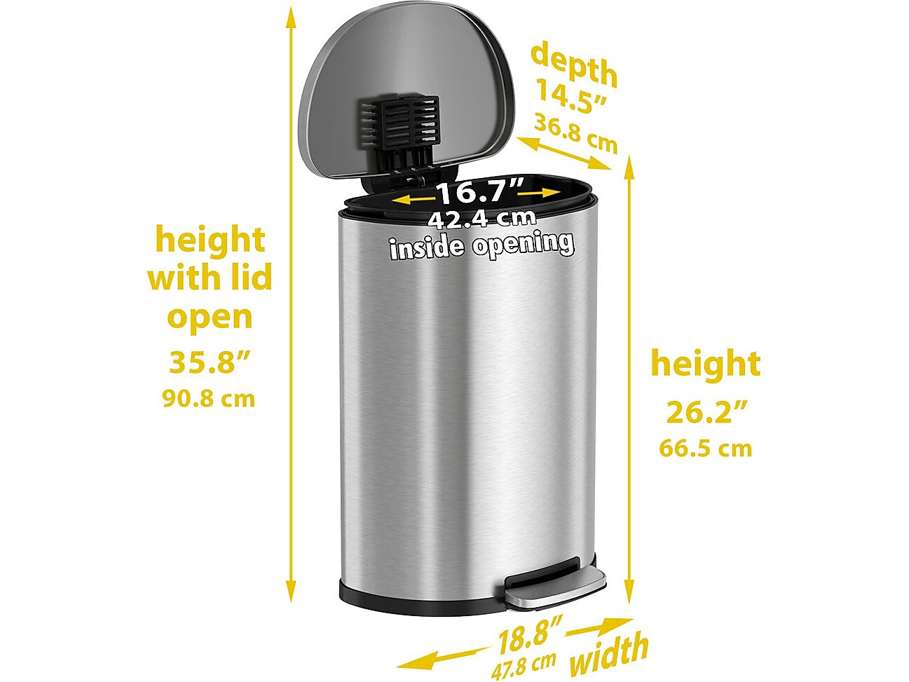 Trash Can Feature | Step pedal, tight-fit lid, removable inner bucket, AbsorbX odor filter, carry handle |