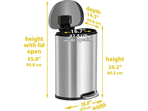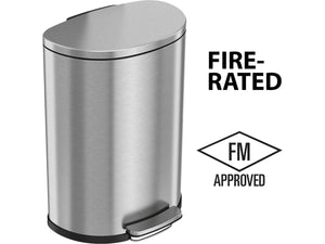 This HLS Commerical 13.2 gal. stainless steel semiround step trash can is tested and certified by FM Approvals, so it provides the compliance, protection, and style you need and want in your facilities. Bin fires are quickly extinguished with the special fire-retardant liner material and a tight lid design that restricts airflow to the interior of the bin, starving a flame of necessary oxygen. Designed to be as aesthetically pleasing as it is safe and easy to use, the elegant stainless steel bin complements any decor. The smooth and easy pedal requires minimal effort and is coupled with a soft and silent lid close. Emptying the trash is quick and clean with the removable inner bin.