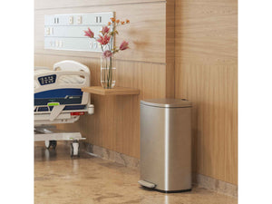 This HLS Commerical 13.2 gal. stainless steel step trash can is tested and certified by FM Approvals, so it provides the compliance, protection, and style you need and want in your facilities. Bin fires are quickly extinguished with the special fire-retardant liner material and a tight lid design that restricts airflow to the interior of the bin, starving a flame of necessary oxygen. Designed to be as aesthetically pleasing as it is safe and easy to use, the elegant stainless steel bin complements any decor. The smooth and easy pedal requires minimal effort and is coupled with a soft and silent lid close. Emptying the trash is quick and clean with the removable inner bin.