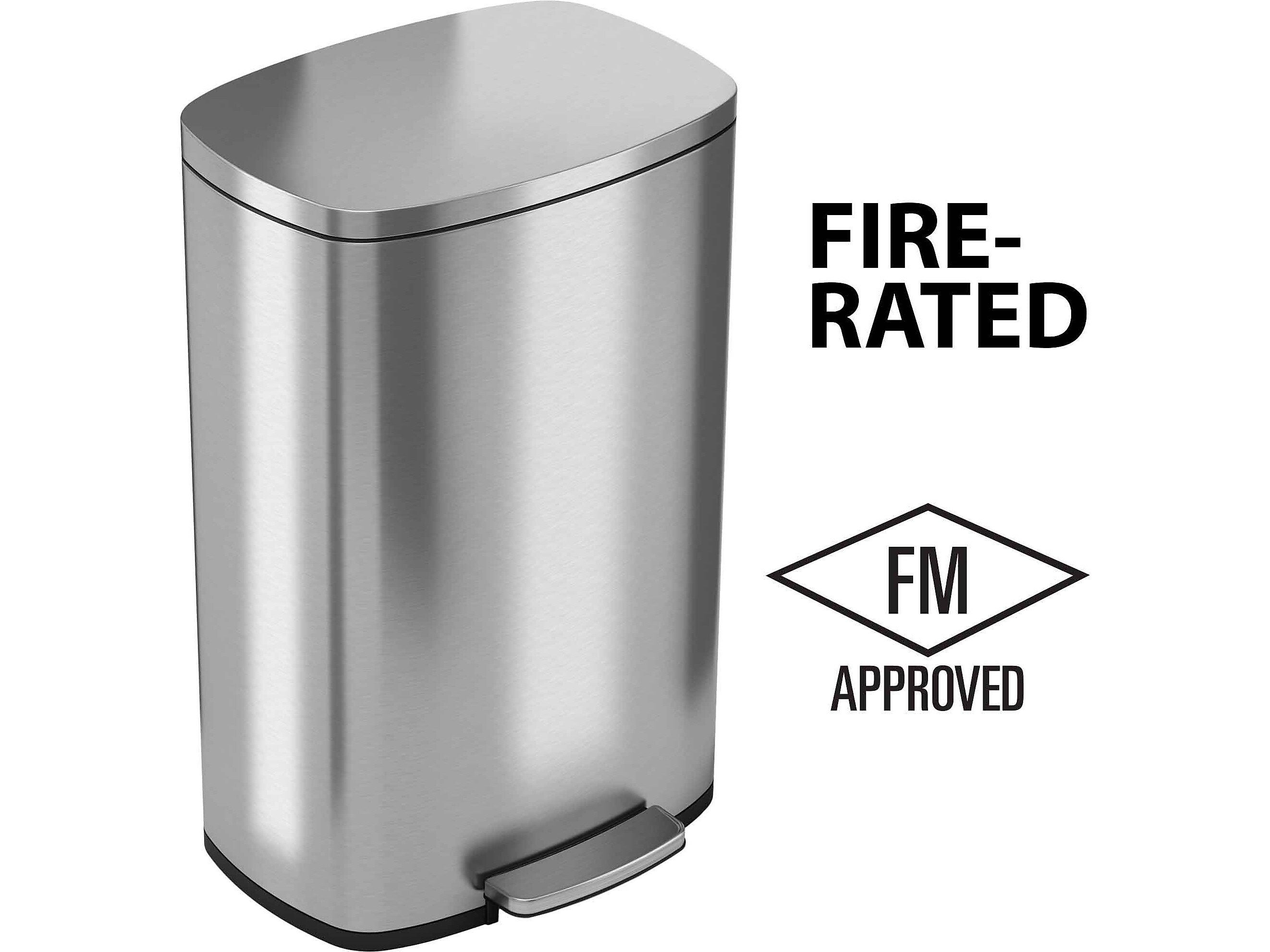 - Decorative rectangular step trash can is fire-rated and FM approved, making it great for medical, commercial, and residential facilities