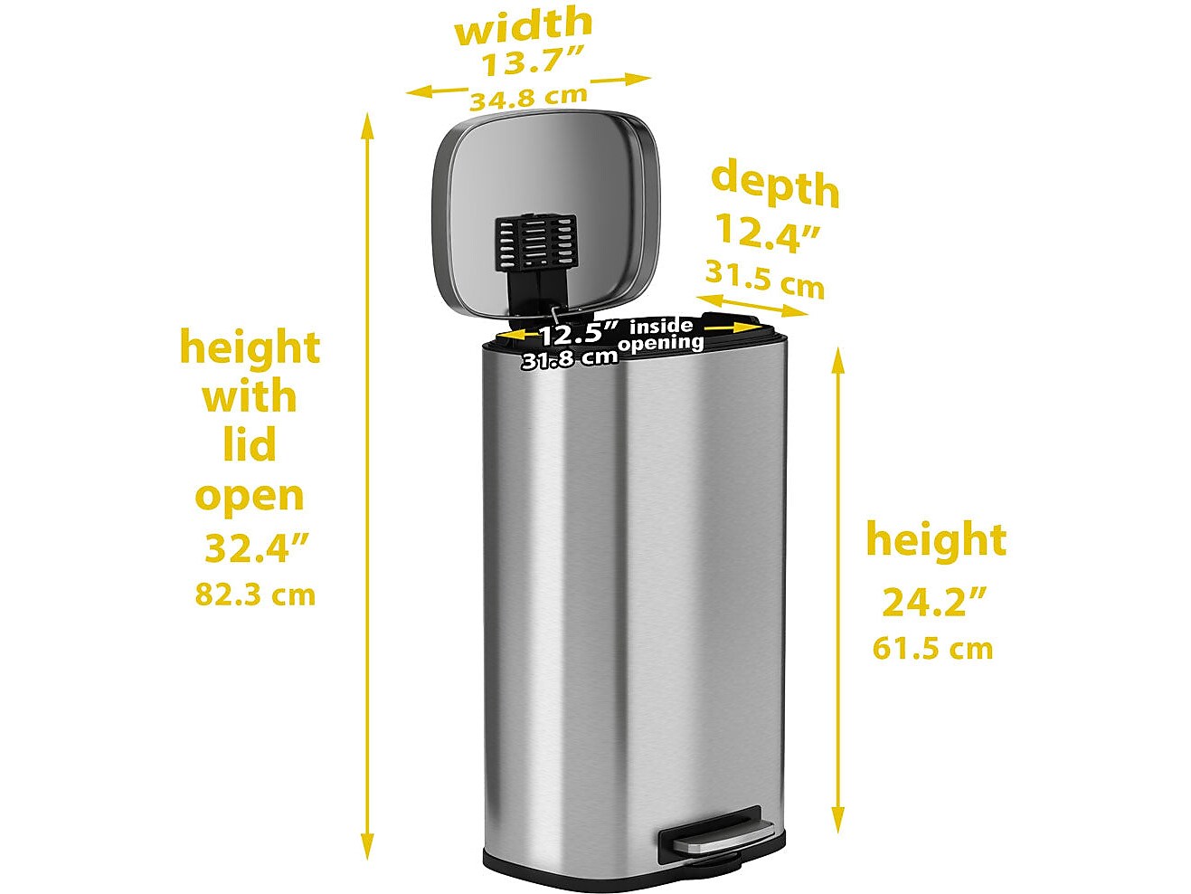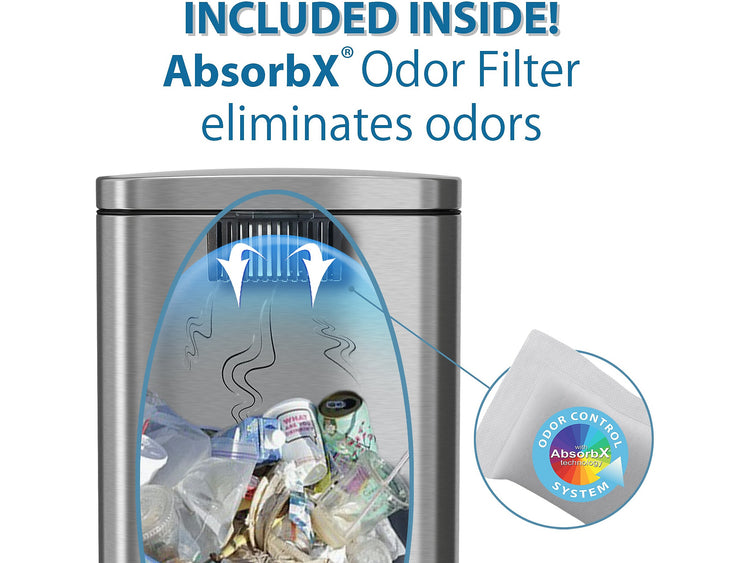 Trash Can Feature | Step pedal, tight-fit lid, removable inner bucket, AbsorbX odor filter, carry handle |