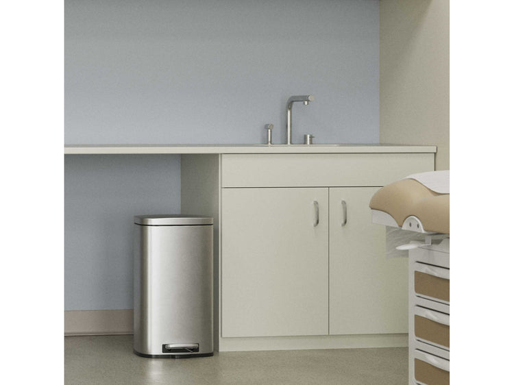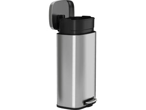 This HLS Commerical 8 gal. stainless steel step trash can is tested and certified by FM Approvals, so it provides the compliance, protection, and style you need and want in your facilities. Bin fires are quickly extinguished with the special fire-retardant liner material and a tight lid design that restricts airflow to the interior of the bin, starving a flame of necessary oxygen. Designed to be as aesthetically pleasing as it is safe and easy to use, the elegant stainless steel bin complements any decor. The smooth and easy pedal requires minimal effort and is coupled with a soft and silent lid close. Emptying the trash is quick and clean with the removable inner bin.