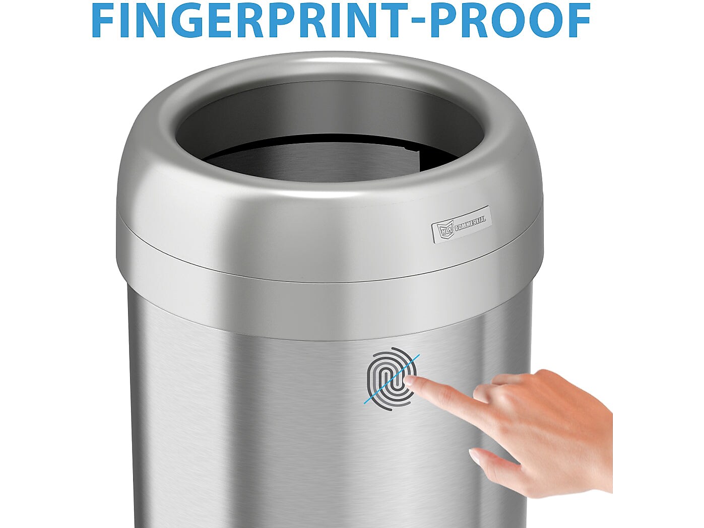- Features a durable and attractive stainless steel body with a fingerprint-proof, smudge-resistant finish and ABS plastic lid