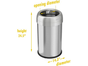 HLS Commercial Stainless Steel Trash Can with Open Lid, 13-Gallon, Silver (HLS13STR)