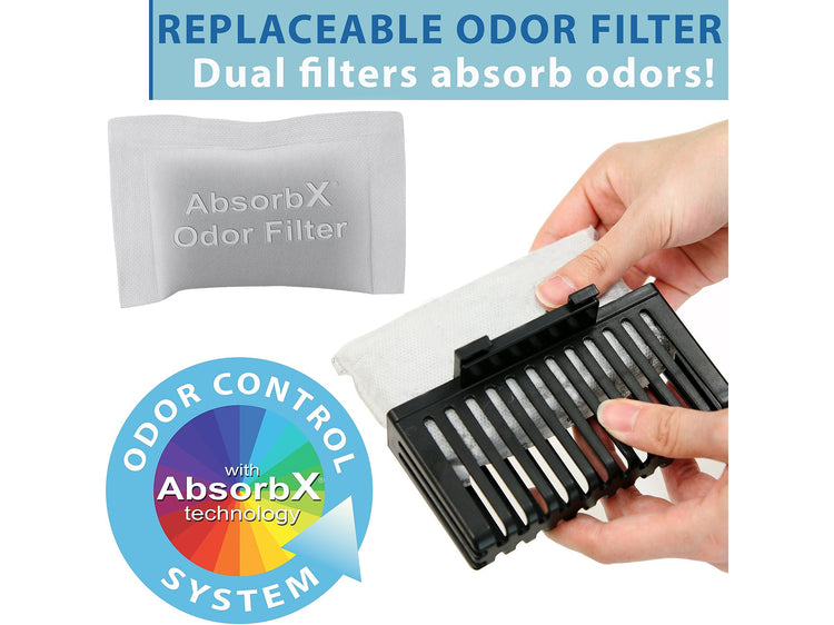 - Dual AbsorbX odor filters keep the surrounding area smelling fresh and clean