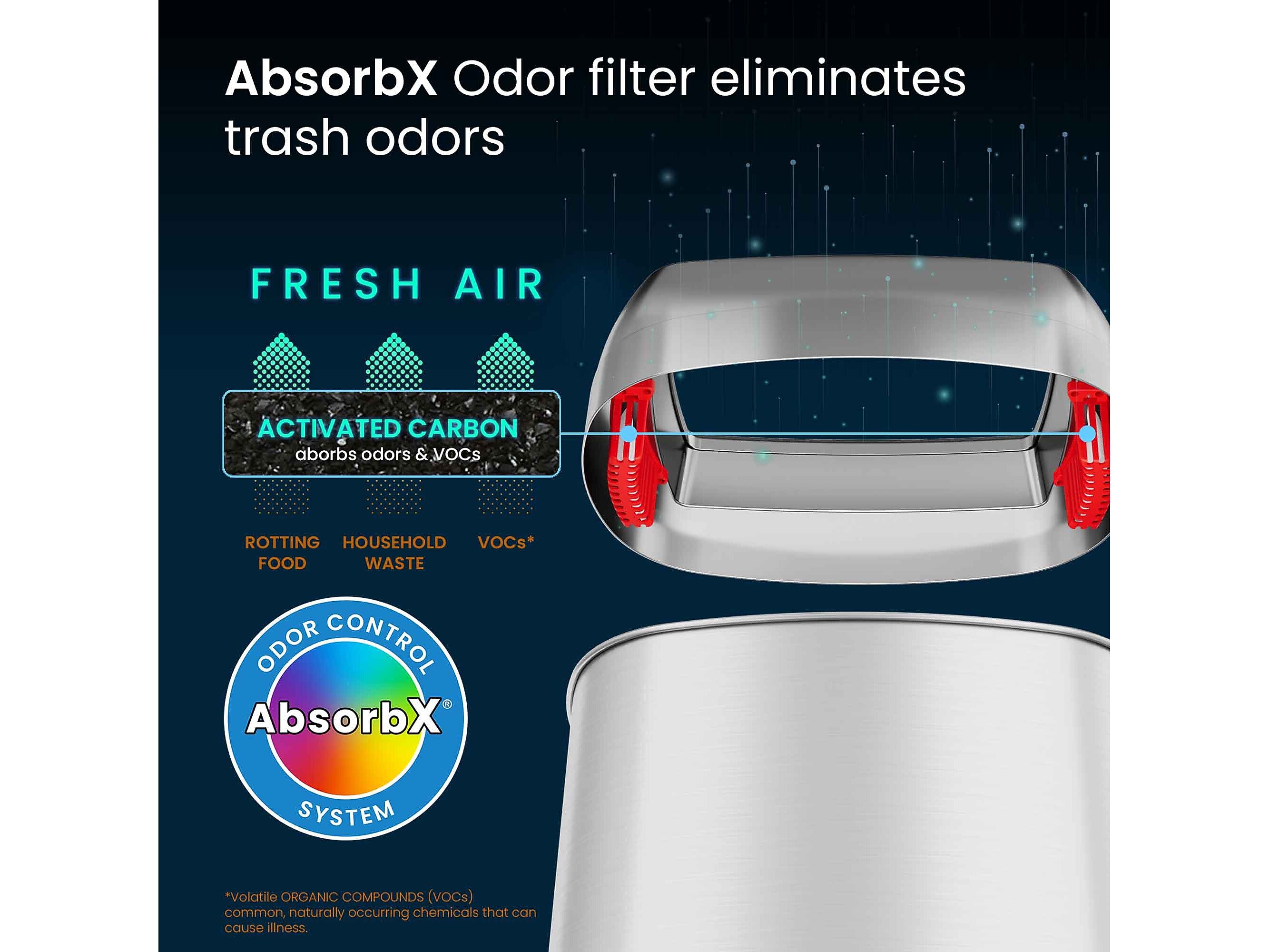 - AbsorbX odor filters utilize all-natural activated carbon technology to absorb and neutralize trash odors, leaving your kitchen smelling fresh and clean