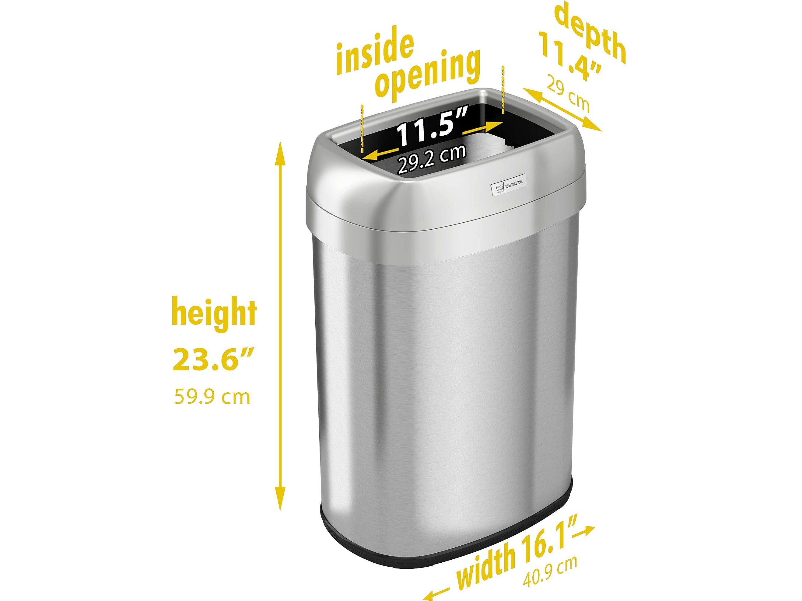 This HLS Commercial trash can is a great storage disposal solution for your office. The large capacity and the wide opening accomodate bulky trash, making it perfect for busy homes, offices, restrooms, and more. Dual odor filters keep the surrounding area smelling fresh and clean. The two replaceable natural carbon filters absorb trash odors. The finish is fingerprint-proof, smudge-resistant, and easy-to-clean. HLS Commercial provides all the elegance, convenience, and durability you could hope for in a trash can.
