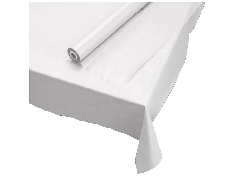 Protect tables from stains and other damage with this table cover roll. The white color provides a neat, clean appearance, and with 300 feet of material, large seminars, lunches and meetings are covered. This Hoffmaster table cover has a disposable design to make cleaning up after activities simple, and the plastic material prevents liquids from seeping through.
