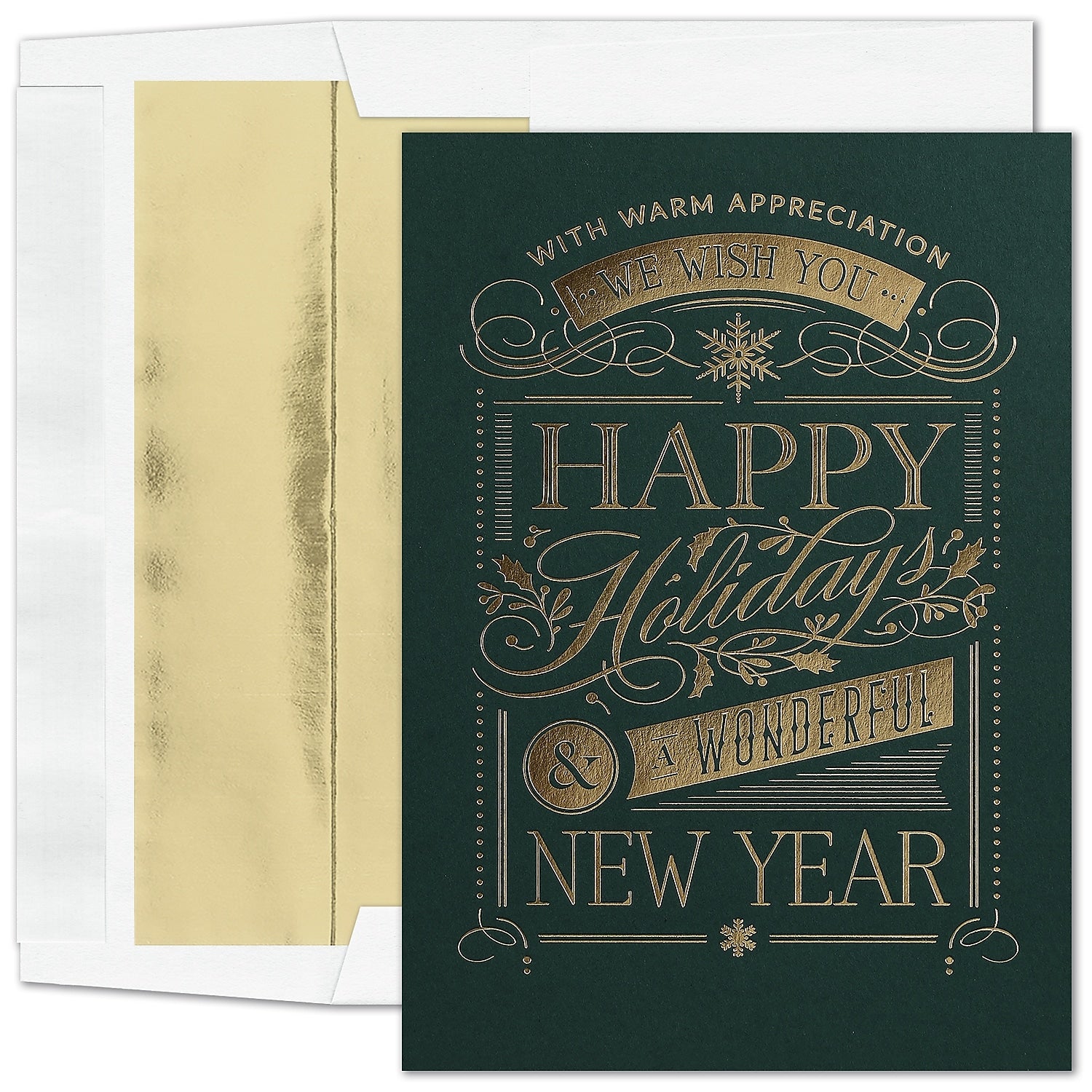 "Holiday Message" Holiday Card w/ Gold Lined White Envelope, 25/BX