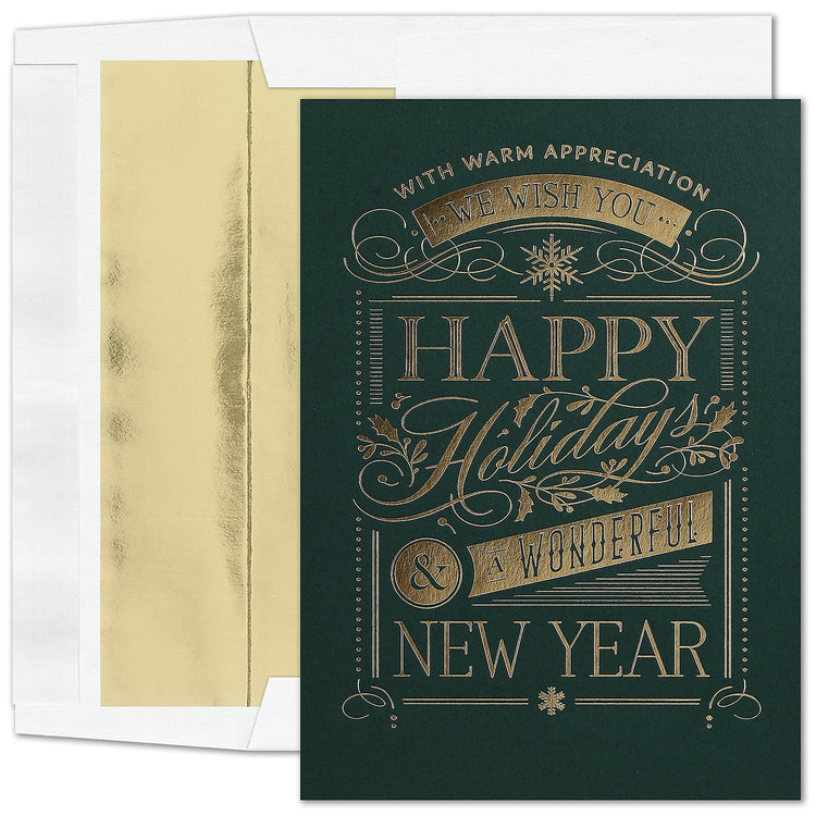 "Holiday Message" Holiday Card w/ Gold Lined White Envelope, 400/BX