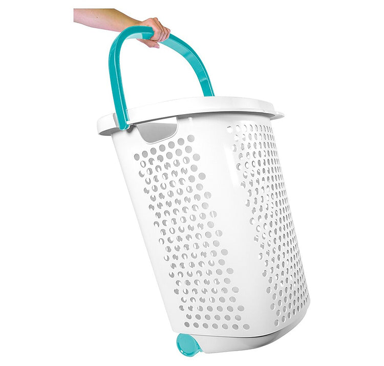 Tilt & Roll, Lift & Go! This rolling laundry hamper from Home Logic is an ideal solution to easily transport your laundry anywhere you need. The built-in wheels and a Pop-up handle bar makes any laundry day a breeze. The large capacity laundry basket can hold loads of clothes for your convenience. Comfortably travel throughout your home or across the hallway to the laundry room with this rolling hamper. The rolling laundry basket is perfect for busy family and college life. The ease of use makes this a college dorm room essential. It can also help you maneuver around a laundromat. Put less effort into your laundry routine with this rolling hamper that doubles as a mobile laundry basket. The rolling hamper is also a great use for garage storage. Use it to store your sports gear, toys, or gardening supplies which are ready to roll out when you are!