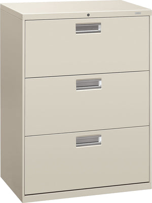 HON Brigade 600 Series H673 3-Drawer Lateral File Cabinet, Locking, Letter/Legal, Light Gray, 30" (HON673LQ)